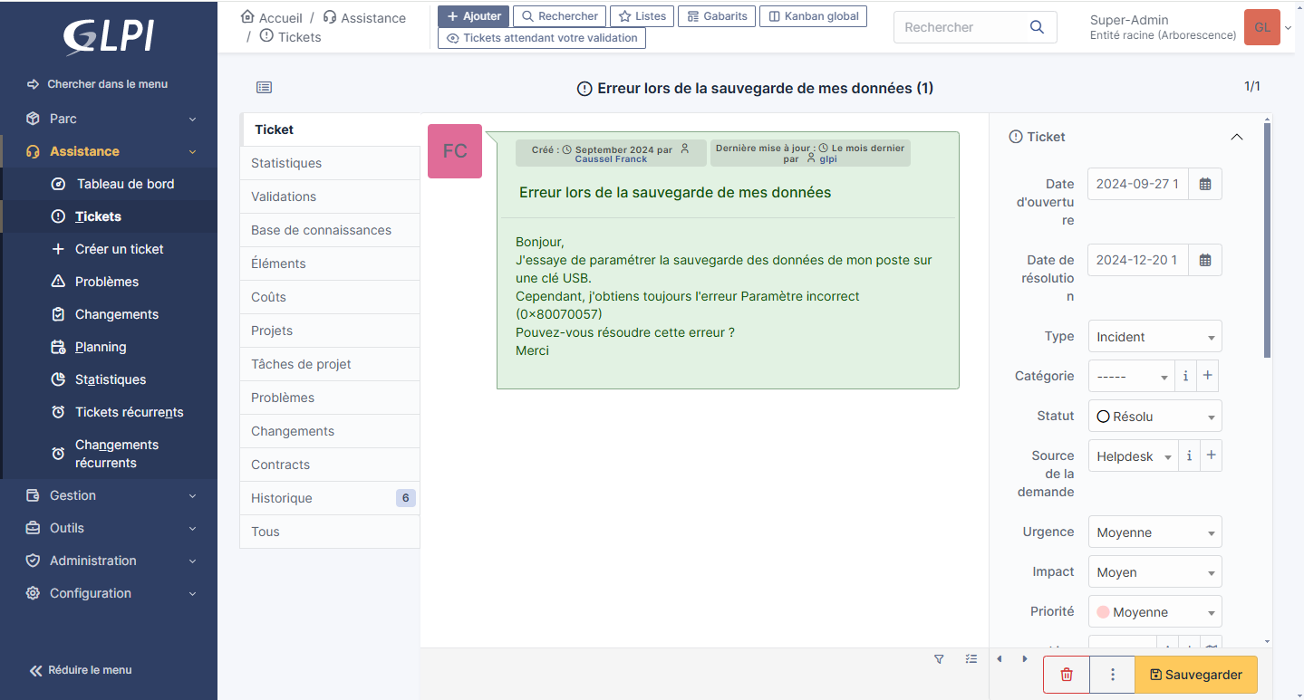 Au cours de ce projet, j'ai intégré les fonctionnalités de sauvegarde et de ticketing.