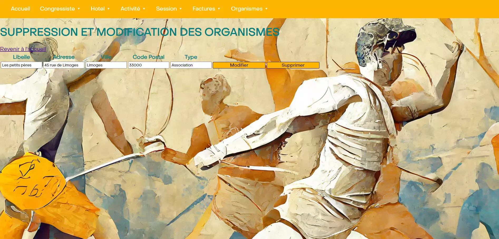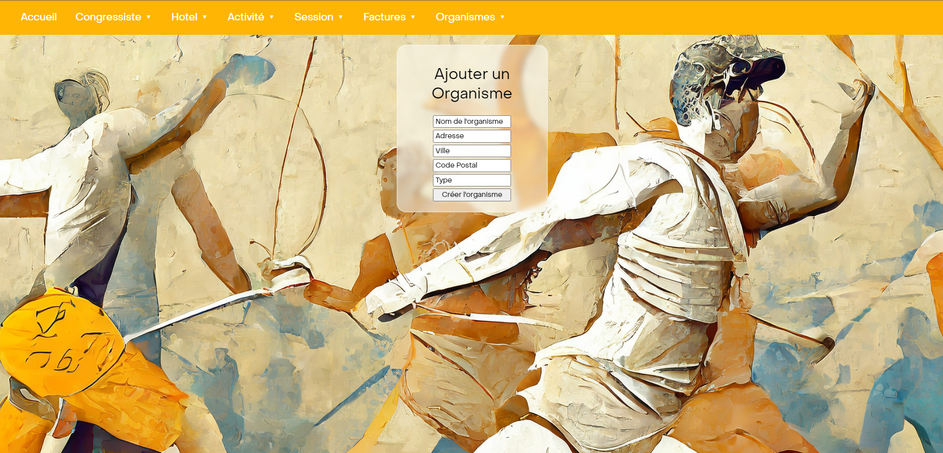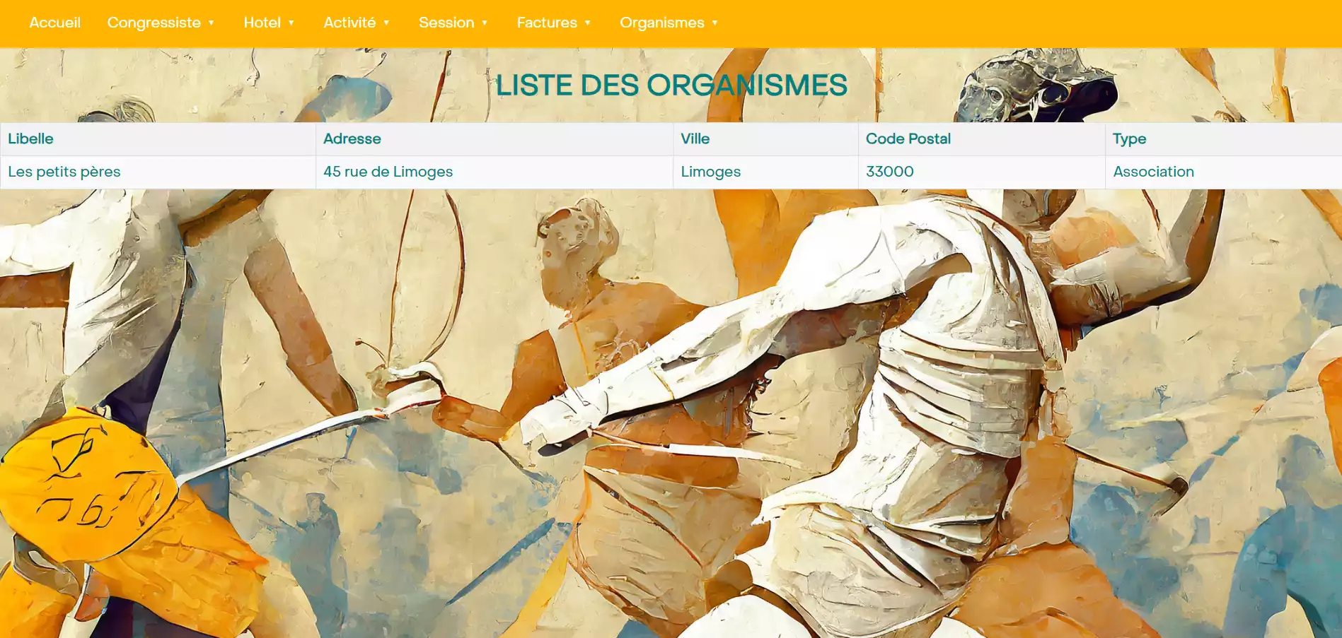 Je me suis occupé de la partie organisme qui permet la création, la modification,